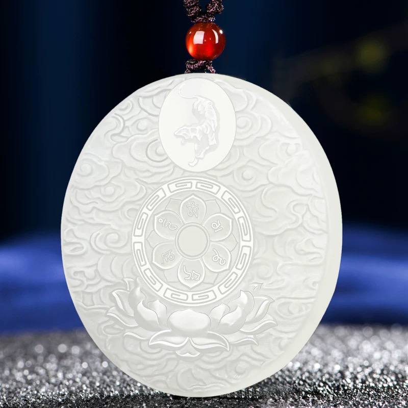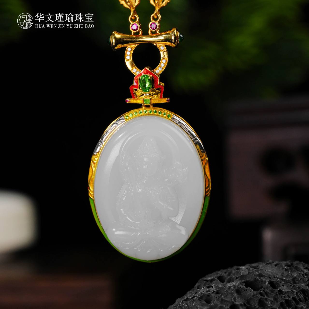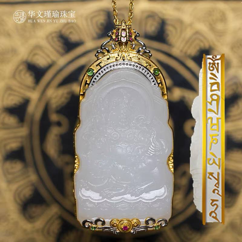 华文瑾瑜珠宝白玉吊坠和田玉白玉文殊佛牌玉石挂坠文殊·伏障圣尊