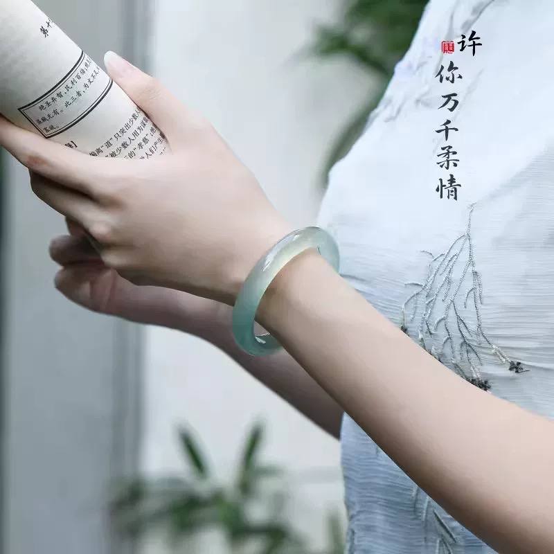 首页 >> FREEHOPE冰种玉手镯翠色玉髓青玉石镯子年轻款玉镯