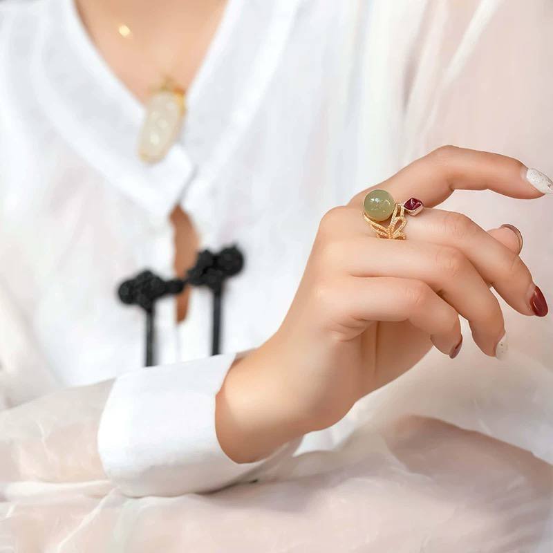 首页 >> 华文瑾瑜珠宝冰晴水戒指天然和田玉冰晴轻奢气质戒女显白朱雀元光