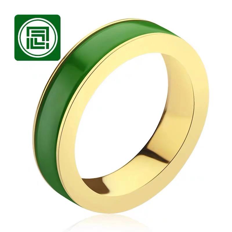 首页 >> 念玉珠宝18K黄金镶玉戒指婚戒和田玉扳指碧玉指环男女款