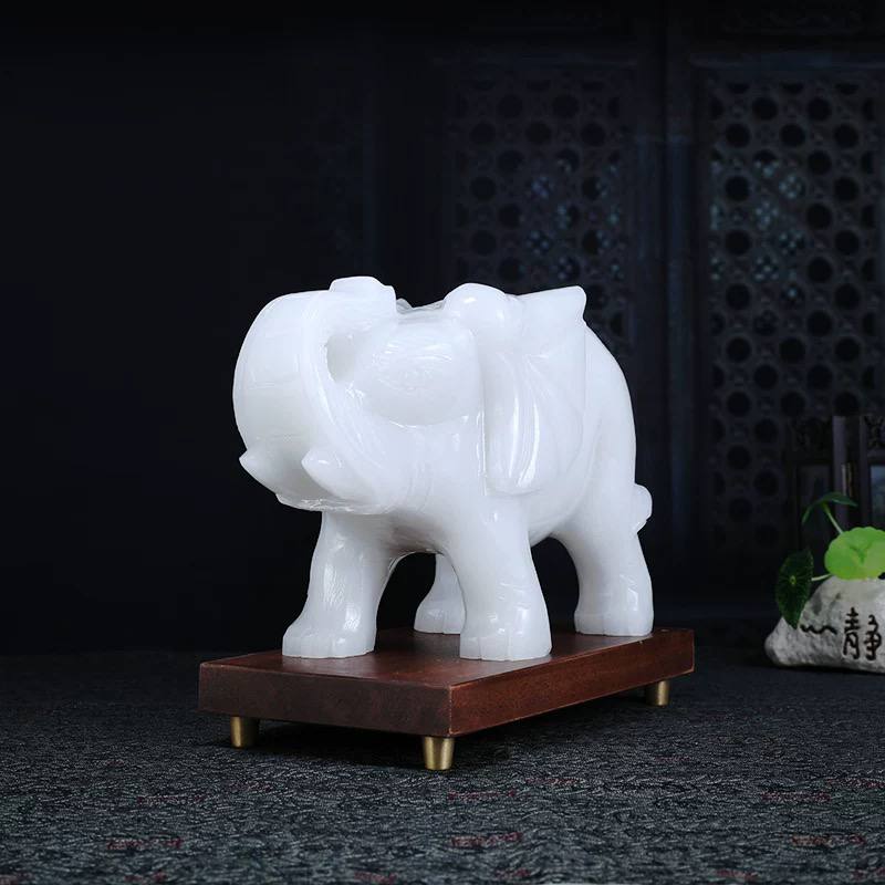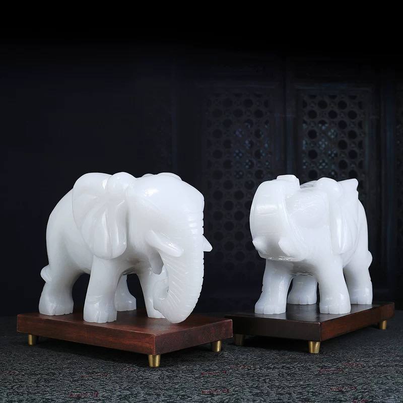 天然玉石大象摆件一对招财客厅玄关酒柜装饰品新房装饰品乔迁礼物