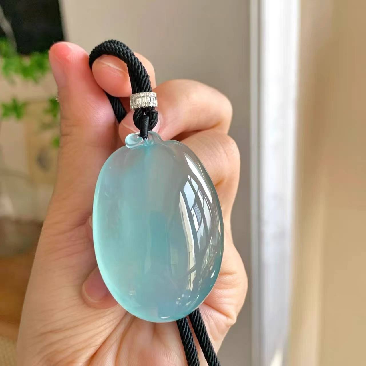 首页 >> 天然老坑高冰种福瓜翡翠吊坠缅甸a货天空蓝玉坠子挂件项链男女款