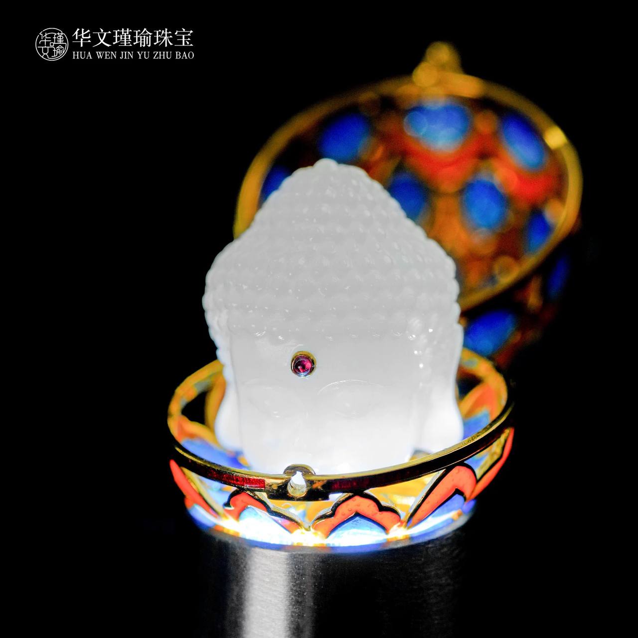 华文瑾瑜珠宝白玉吊坠和田玉白玉空窗珐琅吊坠华藏世界·大梵天